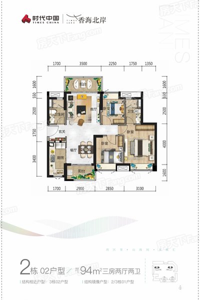 3室2厅户型图 (3室2厅94.00㎡平米)